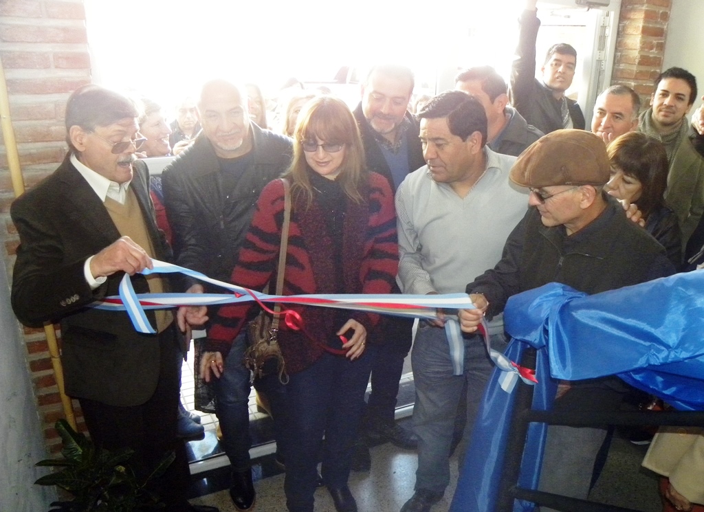 Descubrimiento de Placa inaugural Rogelio De Leonardi y las Docentes Jubiladas Sra. Amanda de Carrara y Sra. Juanita Rivero; y el tradicional corte de cintas, junto a Rogelio De Leonardi representantes de los delegados departamentales, entre ellos el Prof. Pedro Alfonso de l departamento Rosario V. Peñaloza, y Luis Lucero de UDAP - San Juan. Ambos actos rodeados del acompañamiento de invitados especiales, delegados escolares y personal de la Casa.
