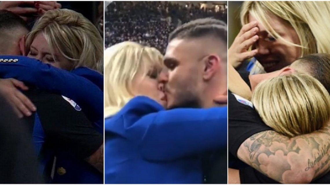En la tribuna del estadio Giuseppe Meazza de Milán estaba Wanda Narajunto a sus hijos. Y al final del tenso partido, el jugador se acercó a ella para darle un gran beso.