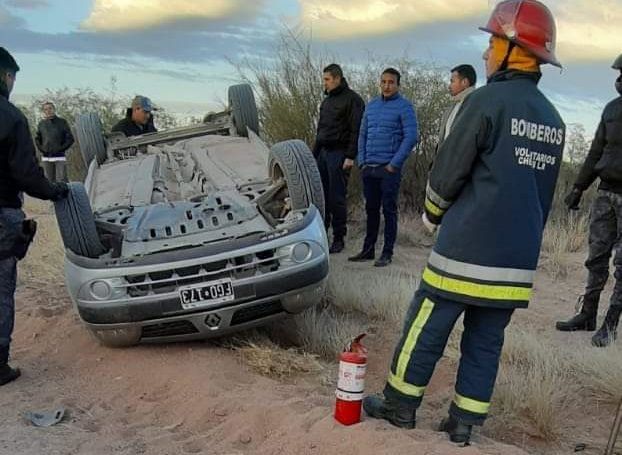 Esta mañana cinco docentes se trasladaban en un vehículo Renault Clío sobre una ruta de tierra en el sur provincial con destino a la escuela de La Callana cuando de repente protagonizaron un vuelco por el reventón de un neumático.